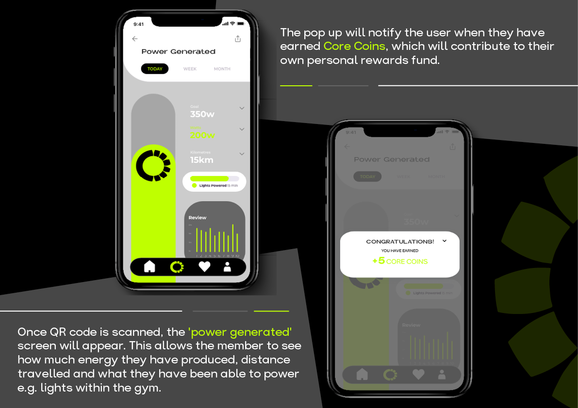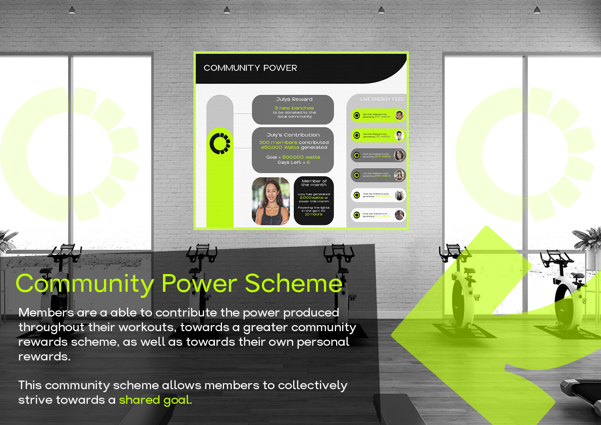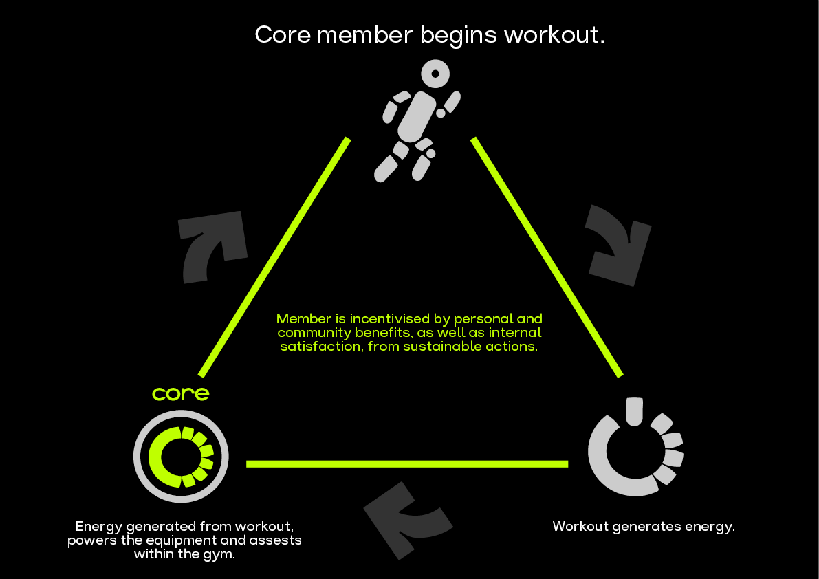 In response to the growing need for sustainable energy solutions and the desire to reduce the environmental impact of fitness, I developed a concept for a unique gym that is entirely powered by its members’ workouts; CORE. The gym is designed to harness the energy generated by individuals through exercise equipment to power the gym’s lights, air conditioning, and other essential systems.